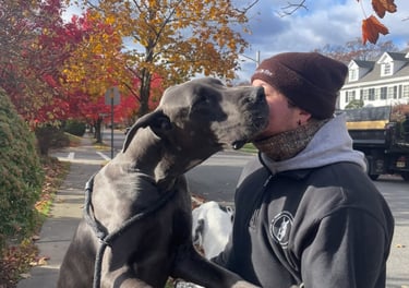 Brianna and Luca (Nitro's parents) are the humans supporting his business dream. They came together in 2022 with BDpetsitting and after a few years of creating amazing connections and watching beautiful animals, it bloomed into Nitro & Co. Brianna is our dog trainer and petsitter with a passion for all animals big and small. She is a certified Catch Canine Academy Dog Trainer and completed behavioral workshops with them as well. She hopes to make pets and owners lives better through providing holistic training, dog walking, and petsitting. Luca is our certified White Light Reiki practitioner who wishes to add healing to pets daily lives. He is also our main sleepover petsitter who enjoys bringing a calming presence to his stays.